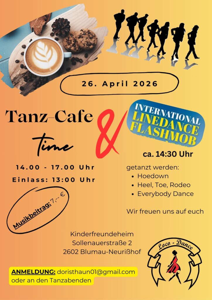 Wir freuen uns wieder auf rege Teilnahme beim Tanz-Cafe und viele Mitwirkende beim Videodreh für den Internationalen Line Dance Flashmob.